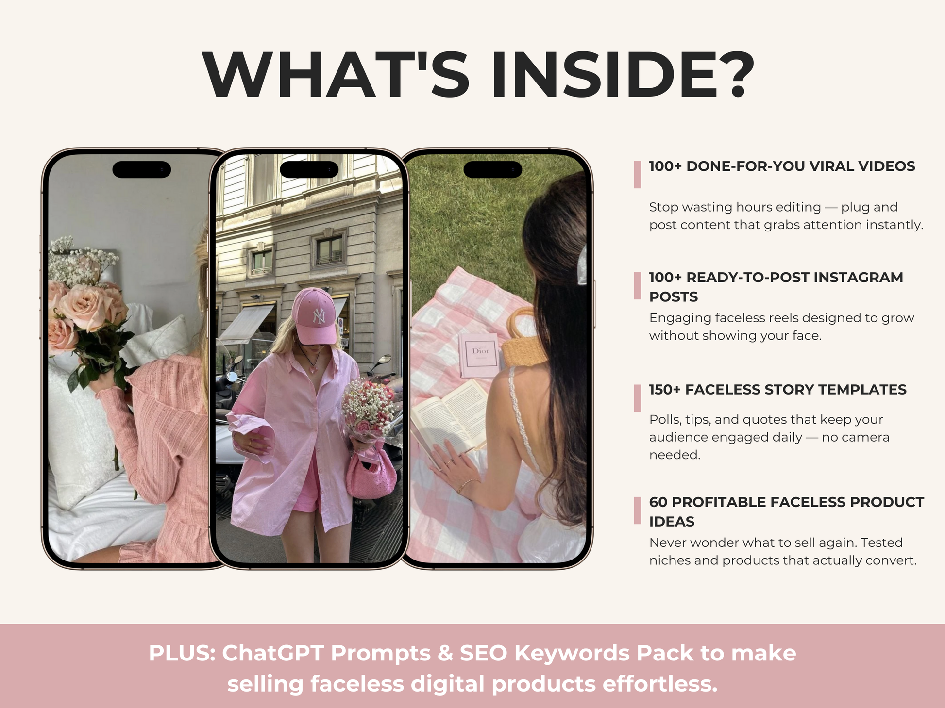 With this vault, you’ll have ready-to-post content, ideas that sell, and a clear plan to turn your faceless channel into a brand.
